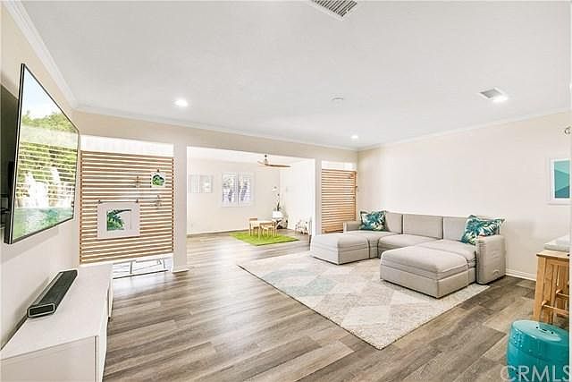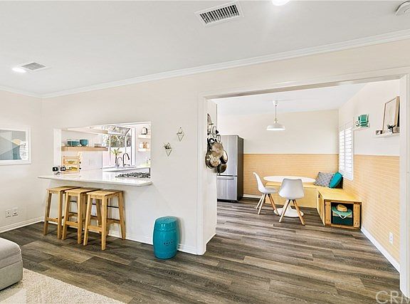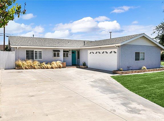 Welcome to your own little piece of Pinterest Paradise. This beautiful single-story corner lot home has an open layout like no other between the kitchen, family room, and living room which is great for keeping an eye on the whole family and large gatherings. Just outside the living room through the sliding glass doors is a patio that overlooks the pool and plenty of additional space for a garden, play area, and more. High walls around the house keep the home more private. Direct access to the 2-car garage from the kitchen. Solar panels may be included upon buyer's credit qualification with solar company. The list of upgrades are endless; new stainless steel appliances, white quartz counter-tops, luxury gray flooring, brushed nickel hardware, Swiss coffee paint, LED can lighting, smart home technology, vinyl windows, curbside exterior lighting, 200amp electrical panel, new a/c and furnace along with new duct vents, and new interior shutters make this a cozy and modern home.