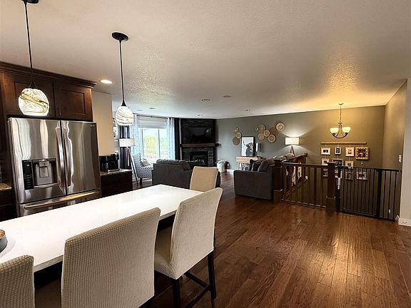 This stunning rambler features unique beam ceilings, and built-ins all starting with the beautiful Craftsman front door! The open floor plan connects the dining, kitchen, and living room with a cozy gas fireplace. The kitchen boasts Cambria countertops and a large island. The master suite offers a double vanity, heated floors, a tiled shower, and a walk-in closet. The finished basement has a family room with a pine plank ceiling, three additional bedrooms, a full bath, and a walk-out to the heated three-car garage with a work area. A home full of character--schedule a visit today!