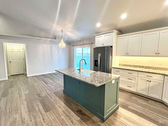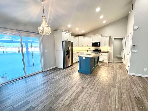Located on over 1/3 of an acre lot this fantastic home is ready for you to call it home. The home features an amazing fenced in back yard. Cloudy now, but you will see the most wonderous Idaho sunsets here as you enjoy the covered concrete back patio. Your fishing boat will fit just right with the extended RV parking next to the garage. Auto sprinklers will make this yard green right up in the spring. Inside, the functionality, its use of the space and quality is next to none. With 4 bedrooms and 2 baths this home features granite counters, slow close cabinets, and LVP in the main living areas, dual master vanity and a master walk in closet. And to make the transition easy for you, all of the appliances are included. Make an appointment today!!