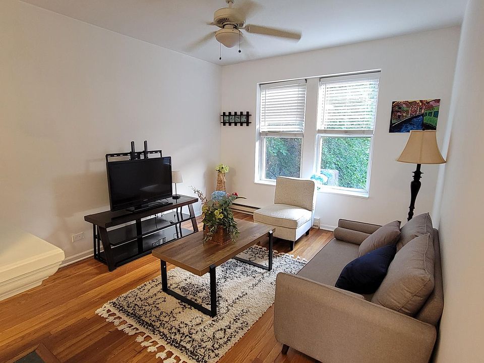 Clean 2nd floor apartment available June 1st! Only apartment in the building that has a cement patio that allows a gas grill! This apartment is in a prime location, and offers wood flooring throughout, a wood burning fireplace, a sunny living room with eastern exposure, comfortable bedroom sizes (one accommodates a king bed & the other a queen set), an updated kitchen with granite counters and stainless steel appliances and parking options available. Cats are permitted, sorry Rover. Off street exterior parking spaces available on site for $185 monthly. Water, sewage and trash included. Everything is electric based in this apartment and the current tenant's monthly cost averaged $137 over the past 12 months. Management requires 700 credit scores and verifiable income. Call Shawn Jones w Berkshire Hathaway Home Services to schedule a tour or to inquire further. No smoking building.