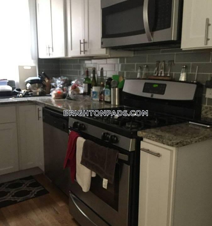 Newly renovated 4 bed, 1 bath unit on the first floor in a 3-family house located near Oak Square in Brighton. Unit features: living room and a modern kitchen granite counter tops and stainless steel appliances. Hardwood floors throughout. Coin-op laundry in the basement. There is a back porch and a shared yard. One off-street parking available for additional $125/month. Easy access to the green line train station. Newly renovated 4 bed, 1 bath unit on the first floor in a 3-family house
