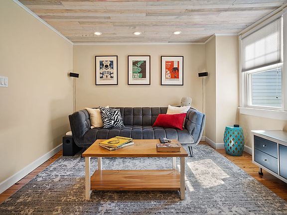 Wraparound porchLofted ceilingsInterior barn doorsConvenient office with built-insRemodeled bathroomCozy kitchen banquette seating