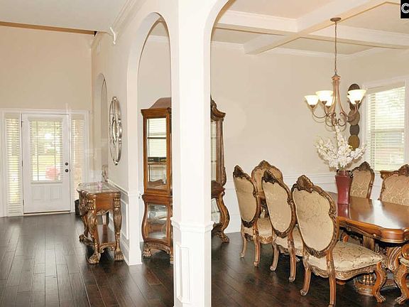 This elegant all brick home is located on a large lot in the Ashley Oaks neighborhood which offers a clubhouse, community pool and walking trails. You will find 4,600 sf of living space on two stories plus an additional 1,000 sf of semi finished walk-out basement, which optionally can be finished for you before closing (ask for details). The two story entryway welcomes you into this grand home with high ceilings, heavy crown molding, beautiful hardwood floors as well as columns. The open floorplan on the first level flows beautifully from the formal living and dining rooms to the large family room with fireplace, eat in kitchen with breakfast bar, island, granite counter tops, stainless steel appliances and pantry to an additional den and office space. Walk out to your upper deck to enjoy shade and privacy. The entire house is wired for surround sound and offers intercoms throughout. On the second level the massive master suite wows with a sitting room, fireplace, french doors, cathedral ceilings, garden tub and shower for a luxurious experience. The extra large closet offers custom shelving. You will find three additional bedrooms with cathedral ceilings and two additional bathrooms as well as the laundry room and a spacious loft area upstairs. Convenient to I-77, Ft Jackson, restaurants, shopping, hospitals, community sporting events and golf courses. What more could you ask for?