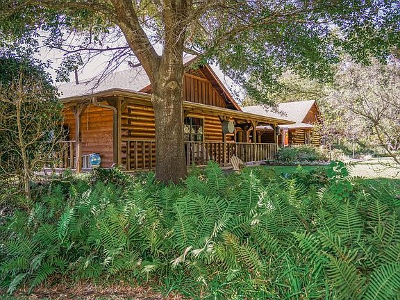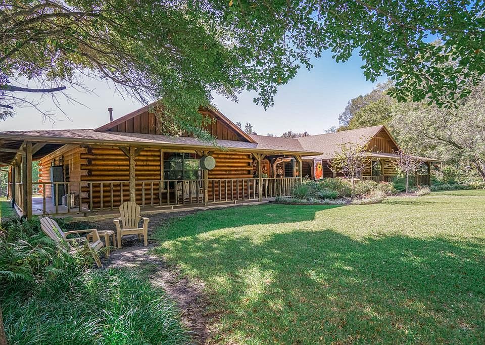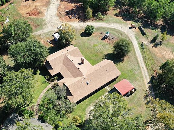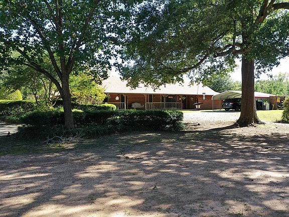Beautiful log home on 10 acres with 662' of road frontage with convenience plus country living. City water & sewer, all the comforts of living in town. You are greeted with vaulted ceilings, expansive family room, beautiful fireplace & French doors to back porch. Family room opens to generous kitchen with island, double ovens, cooktop, large dining area & walk-in pantry. Master retreat boasts vaulted ceiling, private side entry & updated master bath with granite counter, soaking tub, shower & walk-in closet. Bedroom 2 with access to bath 2. Guest bedrooms 3 & 4 share jack & jill bath. All bedrooms generous in size & plenty of storage. 4th bath, laundry with storage & office, 2nd living area with large closet.