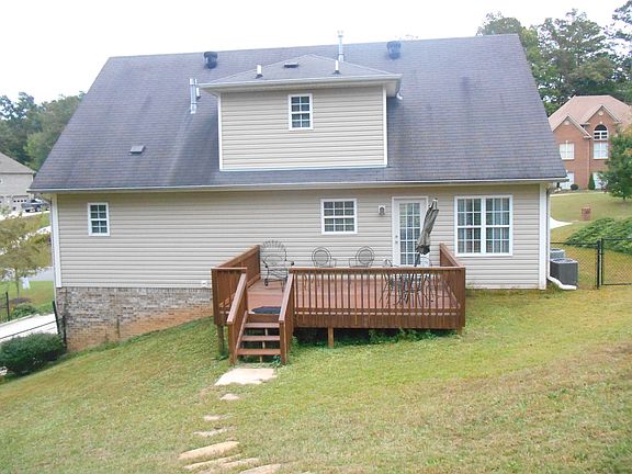 This gorgeous 3 BR, 2 1/2 BA home with picturesque window views features an open floor plan on the main level with large GR, DR, and kitchen and crown molding throughout. The large main level master suite and bath has double sinks, water closet, shower, and garden/jetted tub with recess lighting for relaxation and enjoyment. The uniquely designed kitchen includes bar seating and separate counter area for small appliances with access to laundry room and pantry. Ceramic tile flooring is found in kitchen, full baths, and laundry, hardwoods in GR, DR and half BA, ceiling fans in all bedrooms. The upper level has 2 split bedrooms, bonus room, Jack and Jill BA, and 2 large extra storage spaces. The oversized basement has 2 car parking, lots of storage space for boating equip, golf cart, lawn equipment, extra vehicle, or work area and includes a finished den. A large deck off the DR leads to a massive back yard, fenced with utility gate access. Located in the Heart of Trussville.