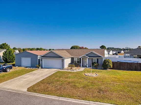 With no HOA and a 35-foot x 24-foot detached garage, this three bedroom, two bath single-level home provides plenty of space and tons of opportunities. The split bedroom layout with an open floor plan sits on .42 acres just outside the Loris city limits in the highly desirable Porters Bay community. The kitchen, which features stainless steel appliances and a breakfast bar, combines with an eating area and large living room under a vaulted ceiling for a great space to entertain family and friends. The master bedroom sits to the left of the home and has a walk-in closet plus an en suite with a walk-in shower. The secondary bedrooms and full bath make up the home's right wing and provide added flexibility in the form of guest rooms, office space or more. The entire interior of the home has been freshly painted and comes with custom window treatments. The detached garage has a concrete pad for flooring and approximately 864 square feet of enclosed space while part of the yard is enclosed by a 6-foot high privacy fence. With the City of Loris under four miles from your front door and Myrtle Beach approximately 30 miles away, this home is ideally situated to enjoy all the perks of small town living while having easy access to all the restaurants, entertainment, outdoor activities and more provided by one of the country's most visited vacation destinations. For more information or to schedule a showing, please contact the listing agent or call your Realtor before this one is gone. Square footage is approximate and not guaranteed. Buyer and/or buyer’s agent is responsible for verification of all information.