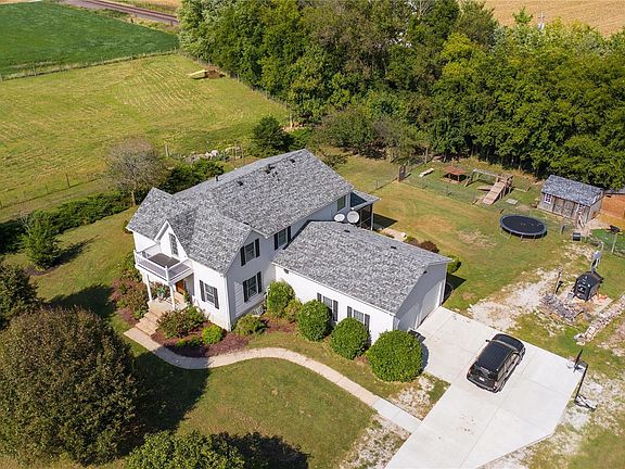 Say HELLO to the Country! Enjoy this charming 3 BR, 1.5 Bath 2 story home w/almost 3,000 sq ft & situated on 2.5 acre in old Valmeyer! The front portion of home was built in 1920 w/a HUGE addition being added on in 2001. Large eat-in kitchen, lots of cabinetry/counterspace, pantry, large family rm w/gas fireplace w/NEW birch wood flooring, including stairs. A 1/2 bath in the hallway & very large laundry room w/cabinetry & closet. Master BR & 2nd bedroom are huge w/walk in closets. Spacious bathroom w/soaking tub & separate shower. Relax, bug free while sitting in the 12 x 17 screened porch & don't forget about the above-ground salt water pool w/new pump! New in August (2021) a concrete driveway, front door & french back doors. On demand Hot Water (2014), Roof (2017),dual HVAC (2001) update flooring, home heated w/Gas or Wood Burner. Property includes, separate electric for a camper, if needed, nice storage shed, and fruit trees. Only 25 Mins to JB Bridge! Call today!