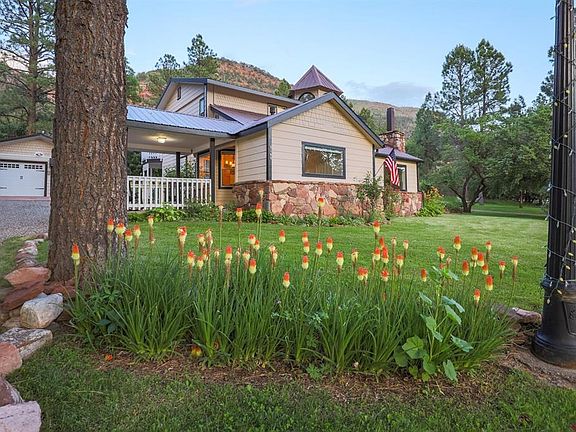 Reintroducing this ICONIC AMERICANA COUNTRY HOME – Welcome to the charming Four Chair Farm in the picturesque Animas Valley. This historic property is nestled amidst the stunning natural beauty of the San Juan National Forest, offering a unique blend of rustic charm and modern comforts. Situated on an irrigated plot of land, this home captures the essence of country living while being conveniently located near amenities and attractions. As you approach the property, you are greeted by a classic, Victorian-style exterior that exudes character and nostalgia. The home's timeless architecture is a testament to its heritage, featuring a combination of natural stone and wood accents that harmonize seamlessly with the surrounding environment. Step inside, and you'll be enveloped in the warmth and inviting atmosphere that only an a true farm house can provide. The interior boasts a spacious layout, showcasing hardwood floors, exposed wooden beams, and large windows that allow an abundance of natural light to fill the rooms and views of the crisp crimson cliffs. The design seamlessly connects the living, dining, and kitchen areas, creating an ideal space for entertaining guests. The kitchen has been tastefully updated to meet modern standards while retaining its rustic charm. Featuring distressed cabinetry and newer appliances, this space effortlessly combines functionality and style. Adjacent to the kitchen, a cozy breakfast nook provides the perfect spot to savor a cup of coffee while taking in the breathtaking views of the surrounding mountains. Four Chair Farm offers three generously sized bedrooms, with a master suite on both the main level and upstairs, each with its own unique character and charm. Both master suites are private retreats, complete with a luxurious en-suite bathroom. The additional bedroom upstairs features an ensuite private bathroom and is ample in space and cozy elements that make it truly inviting. Adjacent to the main house is the near 650 square foot guest suite with full kitchen, office nook, and sizable bathroom. Outside, the property is a haven for nature lovers. A sprawling backyard invites exploration, with mature trees, a well-maintained garden, and a charming patio area where you can relax and soak up the tranquility of the Colorado countryside. The expansive San Juan National Forest bordering the east property boundary offers endless possibilities for those seeking to cultivate a thriving active lifestyle, with the opportunity to hike Halflin Creek Trail from right out your back door. Conveniently located near vibrant Downtown Durango, outdoor recreational activities, and cultural attractions, Four Chair Farm offers the perfect balance of seclusion and accessibility. Whether you're seeking a peaceful retreat or an opportunity to embrace the spirit of the American West, this historic home presents a unique chance to own a piece of Colorado's rich heritage. Don't miss out on the opportunity to make this extraordinary property your own and create lasting memories in this captivating setting.