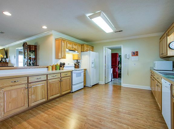 Large open floor plan. Lots of storage in this 3 bedroom 2 bath home. Tons of Kitchen cabinets and counter space. Breakfast bar. Front and back covered porches. Hot tub and above ground pool. Completely private setting.
