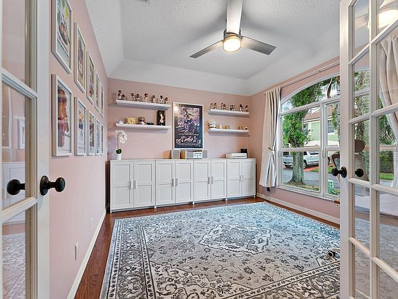 This stunning turnkey home offers three beautiful bedrooms, two bathrooms, as well as a den that could easily be converted into a fourth bedroom. Vaulted ceilings invite you into a bright, open living area ideal for family living, and entertaining guests. An added island in the kitchen provides extra storage, and seating. Impact windows, sliders, and front door have also been added. The backyard is fenced, and has a coverd patio for relaxing outdoors. Located in the gated Woodbine community which offers two pools, tennis, playground, and a fitness center.