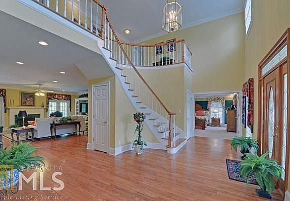 Enjoy the 5 acre view from this gorgeous wrap around porch! MT VERNON/NORTH HALL SCHOOLS. Spacious open floor plan, hardwoods, built in book cases throughout, large chef's kitchen, sep dining & breakfast rooms, central vac system, 2car garage, lg closets. Master suite w/ private sitting room opening to veranda and lg bath & closet. Four large bedrooms on second level w/adjoining lg bathrooms. Terrace level w/ large workroom, rec rm, exercise rm, office space, kitchenette, full bath, storage galore opening to salt water pool. New roof, HVAC & carpet! Fish in your private pond! High output well. MUST SEE TO APPRECIATE!