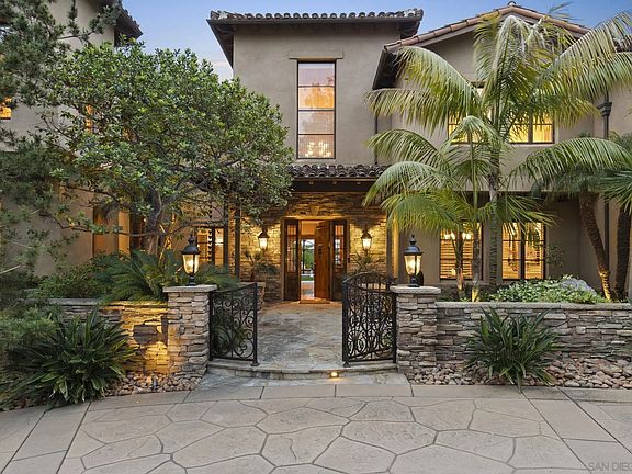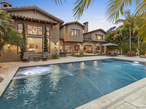 Premier location in the exclusive Meadows Del Mar! This impeccably-maintained home offers superior privacy and the rare ability to walk directly to the Grand Del Mar and golf course. Beautiful and well-appointed interior spaces feature high ceilings and are bathed in natural light. Glide through french doors to the exceptional, expansive covered veranda and stunning private backyard with sparkling pool, artful fountains, rock slide, jacuzzi and lush landscaping. This backyard oasis also offers canyon views, multiple areas to converse and lounge, a BBQ with island seating, firepit and uber privacy. The primary retreat features sunny views, 2 walk-ins, a built-in safe, large view spa tub and office. Extra parking for 4 in the circular driveway.