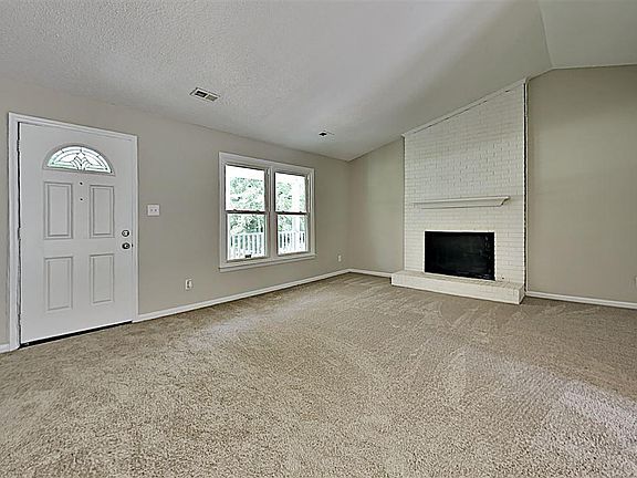 VACANT! Charming ranch on large, flat lot with a huge deck great for entertaining! Close to highways & shopping! Super cute ranch is light & airy with an open welcoming living room with a vaulted ceiling & masonry, wood burning fireplace, kitchen boasts painted cabinets, stainless steel appliances, updated baths, rocking chair front porch & tire swing in the backyard! Hurry, this great home won't last long!! Come see it today!