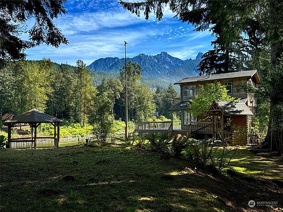 Experience paradise with your own prime riverfront on the Skykomish River! Enchanting one-of-kind waterfront 3-bedroom vacation or primary home in a gated community. Completely updated with new kitchen, floors, bathroom, and furnace. Incredible views, huge deck, charming outbuildings and gazebo on the water. Waterfront parcel to left of house is also included in the sale. Hiking & Skiing close by. Minutes to groceries and gas.