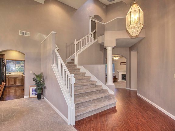 Seller spared no expense. New carpet, laminate floors, & paint. Beautiful formal living & dining rooms with soaring ceilings and well placed windows creating indirect lighting. Large kitchen with an island and room for numerous cooks, opens to cozy family room with fireplace. Great home for entertaining. Bedroom and full bathroom down stairs. Large laundry room. Soaring staircase leads to Large Master Suite. Master Suite complete with sitting area, his and hers walk-in closets. Master bathroom with tile floors, soaking tub and separate shower stall. Upstairs bonus room connects to addition 2 bedrooms and bathroom with two sinks. Three car garage. And the crowning jewel - Lovely back yard with a beautiful sparkling pool.
