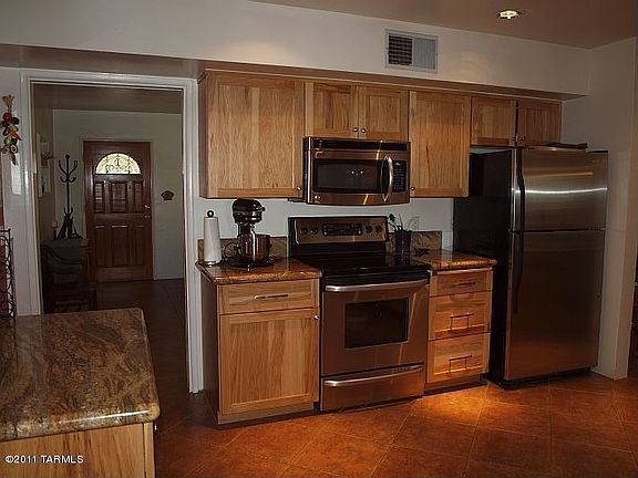 For more information on this property, contact the Listing Agent, Jo Roberts at (520) 918-4836 or johannaroberts@cox.net. Top notch upgrades & updates. Newer cabinets & granite counter tops! Stainless appliances. Large format tile, new carpet, Master suite is split. Family room off kitchen, plus formal living with fireplace. 2 HVAC units, skylights, lush yards, brick patios, block wall, nice trees create private setting. Neighborhood pool is optional, no mandatory HOA. Park nearby. Superb area!