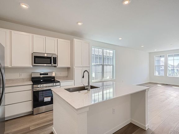 Priced to sell - Move in ready NOW! 55+ Gated Community at The Reserve in Green Valley Ranch! Beautiful Clubhouse and amenities -Beautiful Kingston Ranch plan by Lennar homes features 3 beds, 2 baths, study/office, great room, kitchen, unfinished basement 2 car garage! Gorgeous upgrades and finishes throughout including a slab quartz counters & island, luxury vinyl plank throughout the main floor, stainless steel appliances, carpeting and more. Lennar provides the latest in energy efficiency and state of the art technology with several fabulous floorplans to choose from. Energy efficiency, and technology/connectivity seamlessly blended with luxury to make your new house a home. Green Valley Ranch offers single family homes for every lifestyle. Close to dining, shopping, entertainment and other amenities. Don't miss your opportunity. Photos are model only and subject to change. The active adult community has private roads that are privately maintained.