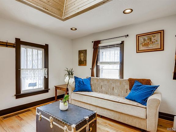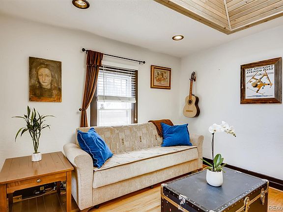 Unique bungalow in prime location! This charming home shines with character, starting with the beveled glass enclosed front porch. Sip your coffee while enjoying the morning sunrise and a beautiful view of the park or curl up with a good book in front of the cozy wood burning stove in the open and bright living room. Custom solar powered/remote controlled skylights in the living room and master bedroom automatically close when rain drops fall. Main level master bedroom includes walk-in closet. Large guest bedroom (non-conforming) in the basement includes a fireplace, closet, and separate entrance (income potential). This captivating home also features a high-end DaVinci impact resistant roof with transferable warranty (possible insurance discount), wood floors, stainless steel Samsung appliances, exposed brick, new paint, updated lighting, and ceiling fans. The vast yard with new cedar fence is a gardener's dream and perfect for entertaining with a patio, deck, pond, and shed. A beautiful sturdy metal gate welcomes you in the paved alley and leads the way to secure and private access to the over-sized finished two-car detached garage with another wood burning stove and attic space for additional storage. There's more off-street parking under the carport and driveway at the front, plus plentiful street parking. This home is truly one of a kind! Conveniently located close to I-70, Regis University, The Noshery, Goldspot Brewing, Bacon Social House, Common Grounds Coffeehouse, all the shops/restaurants on popular Tennyson Street, golf, lakes, and more!