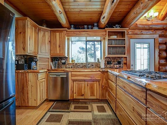 Looking for the perfect Central Oregon retreat? Look no further! This custom-built log home is dialed in with high end finishes and top of the line appliances. 1 bedroom and bathroom located on main level with 2nd bedroom and bathroom upstairs along with a loft that could easily be converted into a 3rd bedroom. Cozy up by your pellet stove or outside on your deck while soaking in the wildlife and Mt Bachelor views. With quick access to the river, lakes and mountain, you will have plenty of room for all your toys. This house is equipped with a 6+ bay shop (56x36) with insulated bays and wood stove and covered RV parking with hookups.