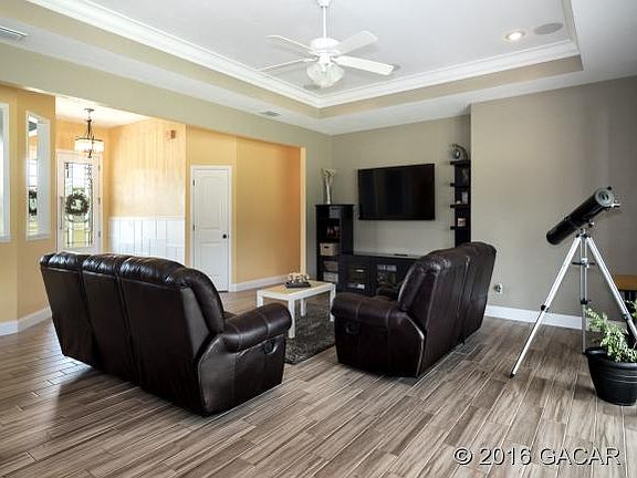 Stunning 2014 custom built Norfleet 4BR/3BA home on 3.55 acres in gated subdivision. Many superior finishes include wood cabinets, granite countertops in kitchen & baths, Stainless apps w/ microwave drawer, touch faucets, rain shower head in master bath, wood-like tile floors, crown molding, spacious closets, in-law suite, honeycomb blinds, prewired speaker system, upgraded and extended network wiring with ethernet & coaxial cables in every room; pocket door sliders in living room overlooking paver brick patio lanai with gas hook up, shed in back yard, 3 car garage, gutters and complete home irrigation, Icynene insulation in attic, tankless water heater, on septic and well $100 monthly utilities and more all in a short drive to town.