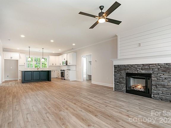 High-quality craftsmanship new construction in Mt Pleasant Middle and High School district by McDonald Homes, Inc., local builder. Level lot in quiet walkable neighborhood is conveniently located in Cold Springs area of Cabarrus County. Open floor plan one level with bonus room, kitchen island with quartz counters, tile backsplash, custom-made cabinetry, gas logs in living room, and luxury vinyl plank throughout. Split floor plan. Spacious primary suite boasts ceramic tile step-in shower, dual sink vanity with two drawer stacks, linen closet, two separate walk-in closets and water closet. Ceiling fans in all bedrooms and living room. Custom blinds installed. Enjoy the outdoors w a large covered back porch & patio for grilling. Front porch with room for sitting. Well kept neighborhood. Builder Warranty included.
