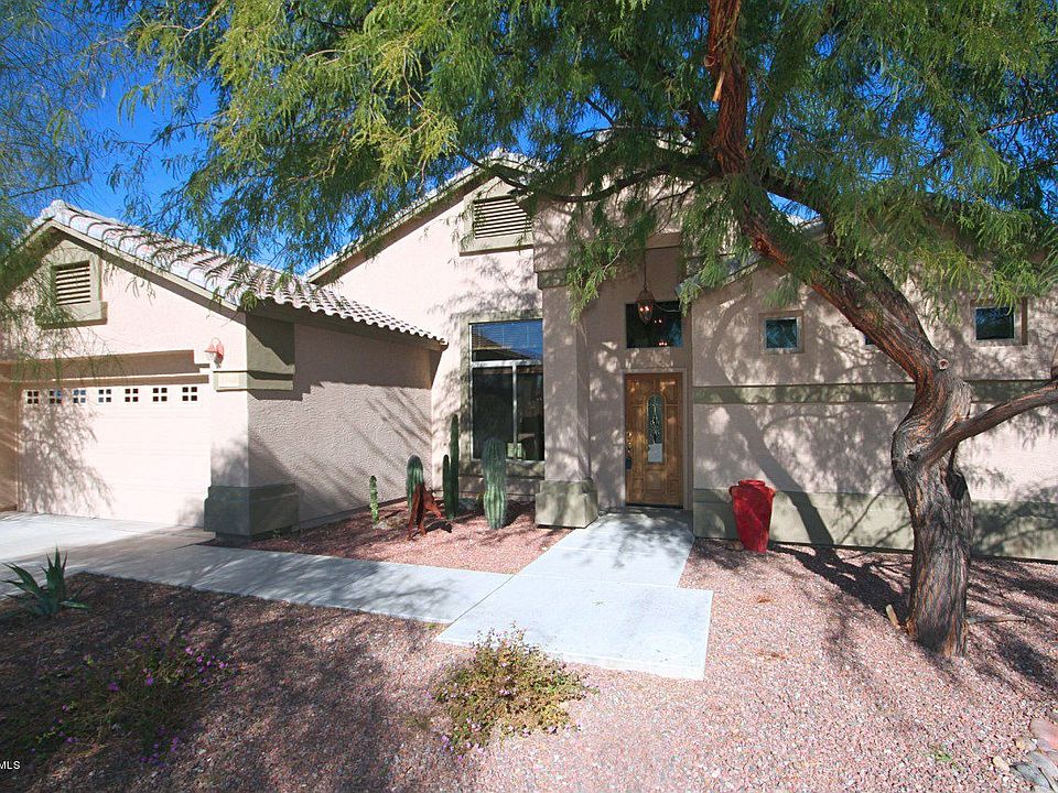For more information on this property, contact the Listing Agent, Pamela Amanna at (520) 907-5602 or p_amanna@hotmail.com. Located on a premium view lot in prestigious, gated River View Estates in North Tucson Foothills offering unobstructed Catalina Mountain views. This open, flowing floor plan home features soaring ceilings & lots of light with ''smart home'' technology, is decorated in warm, welcoming earth tones. The oversize greatroom hosts travertine fireplace, gourmet kitchen with granite counters, cherry cabinetry and separate butler's panty. Gracious Master w/luxurious bath and walk in closet with clear story windows for natural light. Professionally landscaped rear yard boasts expansive wrap around covered porch, bee hive fireplace with banco seating, fountain and auto irrigation and gorgous mountain view.