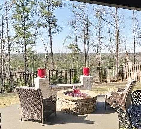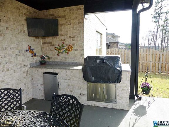 The View from the covered & open patio w/gas fire-pit plus area with built-in entertaining bar offering granite countertop, gas grill, mini-fridge & fenced backyard makes this home a one-of-a kind! Beautiful hardwood floors through-out the main level with welcoming foyer and open floorplan, Formal Dining Room, 2-story Greatroom w/gas FP & large windows, Master Suite w/adjoining spa like Master Bath featuring stand alone soaking tub, separate shower w/frameless door, long dual sink vanity w/granite counter plus his & her walk-in closets. Kitchen offers large eat-off island in kitchen, breakfast area & pantry. Half bath, laundry room & mud area just off the 2-car garage also on main level. Upstairs features bonus area that can be used for playroom/media room/home office, 3 bedrooms & 2 full baths. Many, many extras in this one owner home located in a side-walk community, Hoover schools & convenient to major interstate, shopping & schools.