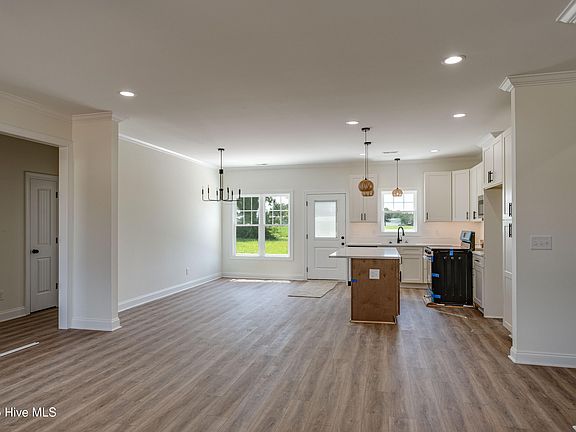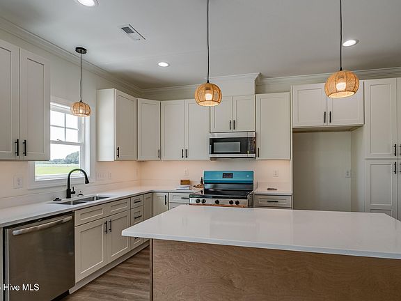 The heart of the home is the open-concept living area, where the kitchen shines with a large center island, granite countertops, stainless steel appliances, with an abundance of cabinets a a hidden pantry in the shelving, in the hallway. It flows seamlessly into the living and dining areas — ideal for entertaining. Interior finishes include low-maintenance laminate flooring throughout the main living areas and plush carpet in the bedrooms for added comfort.