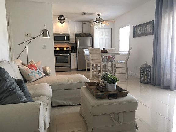 Our recently remodeled 2 bedroom, 1 bathroom condo offers an expansive north-facing patio which is often shaded, making it more enjoyable to relax with the view of the wide canal, where you can sometimes see dolphins and manatees.