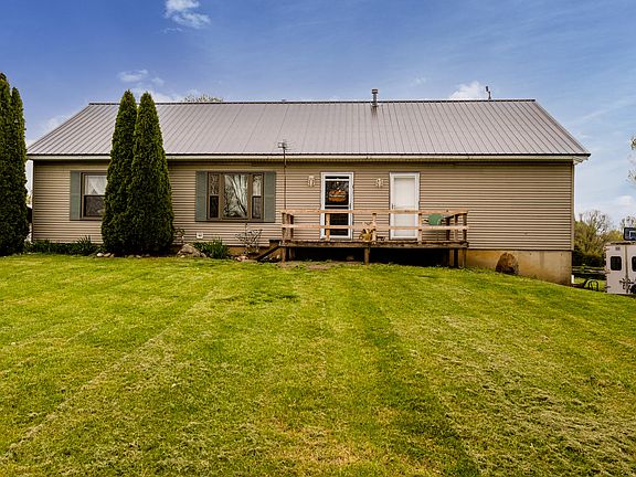 Green Acres! Are you looking for a 3 bed/2bath home on 30 acres with a pond and barn? You found it. This newer home features an open floor plan, fireplace in living room, oak kitchen cabinets, attractive rustic barn wood accents, and full basement with tons of storage and a summer kitchen. Master bedroom has its own master bath. Main floor laundry. The pond is stocked with large catfish and bluegill. You may spend most of your time on the covered deck enjoying the summer breezes. Great set up for horses and cattle. Chicken coop. Large garden. Newer metal roof and replacement windows. Come see!