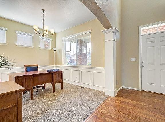 Rare main floor master on a 2 story home! Open flowing floor plan that features hardwood floor in the main living spaces. Fabulous kitchen with gas stove, granite counters, large island and pantry. Upstairs features a loft plus 3 additional bedrooms, one with its own private bathroom. Wide open, unfinished, basement. Lovely back patio to enjoy the Colorado evenings with brand new sod in the backyard. Brand new pool with splash pad and fitness center that just opened up within walking distance of this home. New elementary school slated to open up fall of 2020 also within walking distance. Tennant Pays all utilities minus HOA. Tennant responsible for lawn care/ snow removal. No smoking. Pets allowed. Washer and Dryer on site.