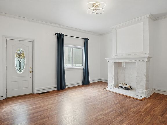 This beautifully updated home blends modern upgrades with timeless character. Spanning 3 spacious levels, it offers more living space than meets the eye. The inviting living room features high ceilings and a decorative fireplace, creating a warm and stylish atmosphere. The renovated eat-in kitchen boasts stainless steel appliances, tile flooring, updated cabinetry, and a generous pantry—ideal for any cooking enthusiast. The 2nd floor offers a spacious primary bedroom, a comfortable 2nd bedroom, and a fully renovated bath. The 3rd floor impresses with another bedroom, plus an additional flex space—perfect for a home office, reading nook, or creative studio. The basement adds even more versatility, featuring a 2nd full bath, laundry area, and bonus room. A walkout leads to a covered rear patio, offering a private oasis for relaxing or entertaining. Recent improvements include: new siding, updated kitchen and main bathroom, newer roof & hot water tank, and washer/dryer.