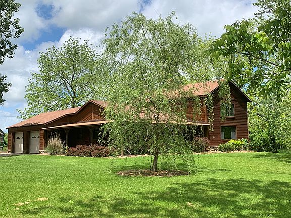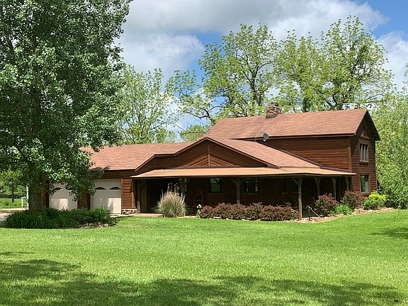 This solid-built, rustic home sits among large oak trees overlooking the clear pasture, and creek. There are 10 Acres M/L with creek and most all of it is hayable! Great Grass! There are working facilities inside the barn, separate workshop/storage area with a concrete floor. There are 7 Bedrooms and 3 Baths. The master suiite is on the main floor with a 2nd bedroom and bath. There is two-story living room with native rock fireplace. The 2nd floor has a balcony and two bedrooms. The basement level has a large family room divided by a double sided rock fireplace. There are three bedrooms and a bathroom. There is an exterior entrance to the basement also. Ample room in this home to work from home too! Owners used Exede internet and ran a business from their home. Home sits in between Mansfield, Hartville, and Marshfield. Flowering trees and plants are everywhere! Bring your animals and enjoy life in the country. Owner has included decorating $20K credit for any upgrades.