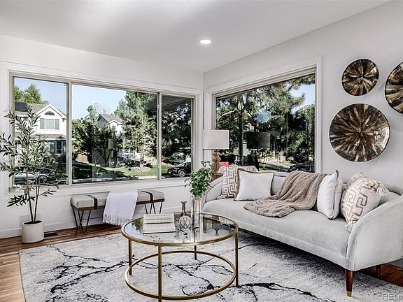 Completely reimagined with a designer’s eye for detail, this Piney Creek home captures the essence of modern refinement in an iconic community. A stately brick facade framed by mature trees creats a timeless allure, setting the stage for thoughtful updates within. Inside, light pours through expansive picture windows, filling spaces with warmth and clarity. The formal living room, anchored by dual picture windows and rich new hardwood floors, offers a space designed for reflection and gathering alike. The adjoining dining room continues the home’s elegant narrative with luxury lights, generous proportions, and another striking window enhancing the interplay of light + space. The kitchen is a showpiece of function and style. Chic white cabinetry meets quartz counters, while a dramatic blue glass backsplash adds quiet sophistication. A charming breakfast nook encased by windows invites in light and views of the yard. The open connection between kitchen and family room creates easy flow for daily living and entertaining. Vaulted ceilings + large windows define the family room, complemented by an elegant whitewashed brick fireplace and built-in shelving. A discreet wet bar enhances ease of entertaining, while a thoughtfully finished basement extends the home’s versatility - complete with a media room, custom built-ins, and an additional room ideal for a home office, gym, or 5th bedroom. Upstairs, the primary suite serves as a private retreat beneath soaring ceilings. Soft light, a spacious walk-in closet, and a spa-inspired ensuite combine to create a space of true serenity. Secondary bedrooms are equally inviting, each with generous proportions, abundant light, and timeless design. Outdoors, a covered patio extends the living space. The large fenced yard is private and lush, offering a perfect backdrop for Colorado living: quiet, shaded, and welcoming. Positioned in award-winning Cherry Creek Schools, this home blends timeless architecture with modern livability.
