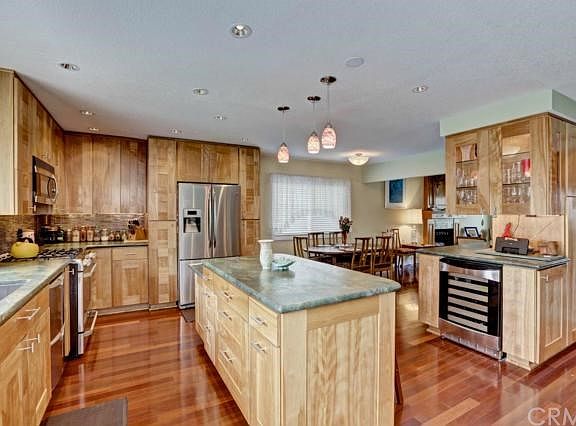 You will love this home from the minute you walk up to the beautiful Oak double doors with beveled Glass. The windows are all double paned and a concrete tile roof, Brick walk way and steps and rock facia make the front of this home a real showplace. The entry floor is slate and living room, Kitchen and family room all have Red birch flooring. The kitchen features designer leather look granite, Ceramic glass backsplash, designer cabinets and all stainless steel appliances. Yes, it even has a built in wine chiller and wine rack storage. The home has 4 bedrooms, one is downstairs, and a huge Bonus room with sliding doors to a viewing balcony. This room has a wet bar and is perfect for entertaining. There is an abundance of living space with the kitchen, dining and Family rooms all open to create a Great room effect. The downstairs bathroom has been remodeled with a designer shower. The oak staircase is beautiful. The home is located walking distance to many schools including Oxford Academy and is nestled in the center of the track. Check back as there will be beautiful pictures by the end of the day.