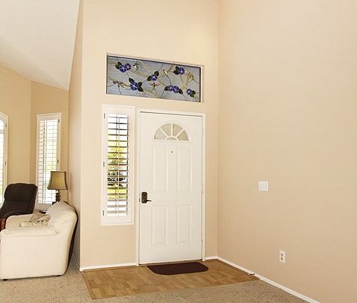 Retire in style in this TURNKEY Marbella home in Sun Lakes Country Club!! Plantation shutters and ceiling fans throughout accent this perfectly maintained home. Entering under the stained glass window you are greeted with high ceilings, a large open living/dining room and an abundance of natural light. The office is attached with swinging doors and a solar tube in the ceiling for extra light. The generous sized master bedroom is warm and inviting with a view of your private backyard and has an attached en-suite. The roomy second bedroom is across from the guest full bath. Enjoy the updated kitchen that has granite countertops, a pantry and cupboards with pull out shelves that are convenient to use and provide plenty of storage. The kitchen opens into the family room which has laminate flooring and a fireplace to keep you warm on those chilly nights. Upstairs is a loft with a full bath and a large walk in closet with plenty of storage. Outside the large private backyard is a gardener's delight with plum, grapefruit, fig and lemon trees planted plus plenty of room to start your own garden. Three club houses, two 18 hole golf courses, one indoor and two outdoor pools, fitness center, 70+ clubs and 24 hour security are just some of the many amenities. Call today to make your appointment to see this TURNKEY home!!