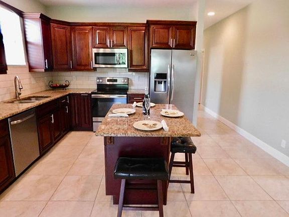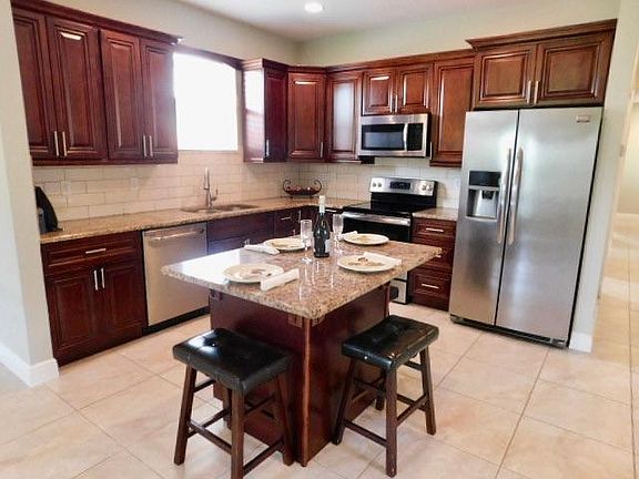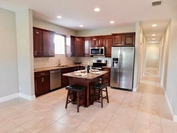 Custom-built in 2016, this gorgeous, single-level, 3BED, 2BA, 1CG beauty offers all the upgrades you desire. Open-concept floor plan with 21'' neutral tile floors in the main living areas, and dark wood laminate in bedrooms. No Carpet! Gourmet kitchen with granite counters, contemporary subway tile backsplash, stainless steel appliances, coffee-colored maple wood cabinets, and a functional cooking island. Separate, formal dining room which could serve as an office/den. Recessed lighting and designer light fixtures and ceiling fans throughout, and a separate laundry room with a, full-sized GE washer and dryer, and extra pantry/storage space.The primary bedroom features double closets, an en suite bath with a walk-in shower and designer accent tile, and a double granite vanity. 2 more spacious bedrooms are located down the hall, both with large closets, along with another full bath with a walk-in shower and granite vanity. Oversized one car garage with a separate entry, and an extra-long and wide paver driveway to accommodate multiple vehicles. Hurricane impact windows and doors for peace of mind. Relax on your covered paver patio ideal for BBQ's and entertaining, overlooking the private and FULLY FENCED back yard. Located in exciting Delray Beach, voted "Most fun small town in America" by Rand McNally and USA Today, close to al major transportation and only 3.5 miles to downtown Delray with its shops, fine dining, museums, theaters, and nightlife. Within a short drive to the world-famous Florida beaches, zoned for A-rated Spanish River High School in Boca Raton, no HOA for a quick move-in, and water and lawn included in rent. 1 DOG up to 25 lbs. allowed. Grab this rental before it's gone! Owner pays for water/sewer and lawn