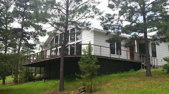 Amazingly beautiful 1370.3 acres of Oklahoma Land in its natural state. Road system is a bit rough in areas but but fairly extensive. There is a variety of elevations that range from basically level land to 1300' cliff that overlook caves and a gorgeous valley filled with Pine and Hardwood trees. An 1800 sq ft 2 bdr home, recently built, sits atop one of the hills. It has a spacious and desirably open living/kitchen with a wall of windows. Barbeque and enjoy views from wrap around deck