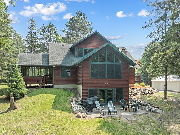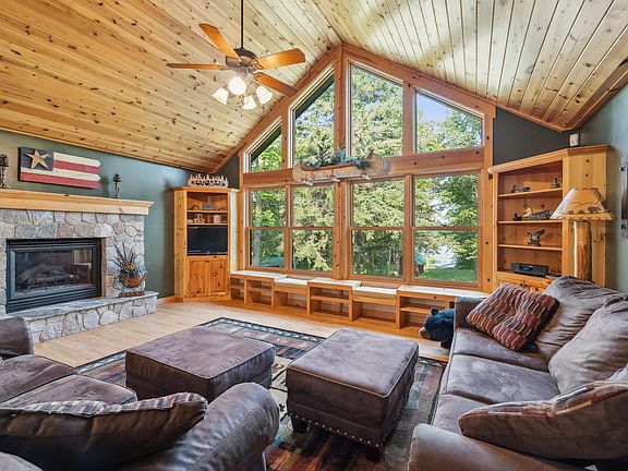 The main home has an open concept with gorgeous, vaulted ceilings in the great room with a stacked stone gas fireplace, kitchen center island, hardwood floors, a second floor with a large primary suite w/ office, lakeside sunroom, full walkout lower level with expansive rec room, bar, and wood burning fireplace! The home has tons of storage, remarkable natural light, and a warm and welcoming atmosphere. The completely renovated seasonal guest quarters has 2 bedrooms and a bath, full kitchen, and has a relaxing outdoor firepit area with privacy and wildlife! There is also a bunkhouse at the water's edge with so many possibilities!