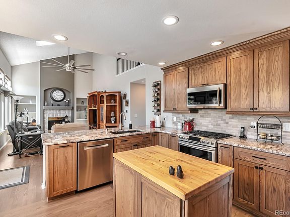 Welcome to this charming home located in Founders Village. As you enter, you'll immediately notice the beautiful hardwood floors that extend throughout the main level. The kitchen has been thoughtfully remodeled to cater to the needs of any aspiring chef. It boasts a gas range with a triple oven, providing ample cooking capacity. The kitchen also features appliance storage areas, a dedicated bread drawer, and custom cabinets that offer plenty of storage for all your cooking and baking needs. There's a dining area within the kitchen, perfect for casual meals, and a spacious dining room for more formal entertaining. The family room is bathed in natural light, thanks to large windows and skylights. Custom window coverings enhance privacy and allow you to control the amount of light entering the room. For added comfort and ambiance, the family room is equipped with a new fan and a fireplace, creating a cozy atmosphere during chilly Colorado evenings. The main floor of the house also includes a bedroom and a 3/4 bathroom, providing flexibility for guests or a home office. Additionally, you'll find a laundry room and a living room that completes the main level. Upstairs, the spacious owner's suite awaits you. This private retreat offers everything you need for relaxation and convenience. The ensuite bathroom boasts a large soaking tub, a separate shower, and a walk-in closet. Two additional bedrooms and a full hall bath are also located on the upper level. The unfinished walk-out basement presents an opportunity for your touch. Stepping into the backyard, you'll discover a tranquil oasis that's perfect for savoring your morning coffee or hosting gatherings with friends and family. A drip system is in place to facilitate your gardening needs, ensuring your plants stay nourished and vibrant. There are 3 parks, community pool and tennis/pickleball courts all within walking distance. This home is in close proximity to shopping and dining. New roof to be installed.