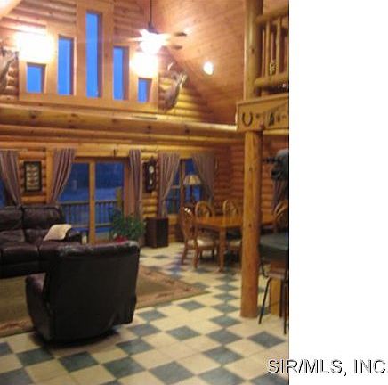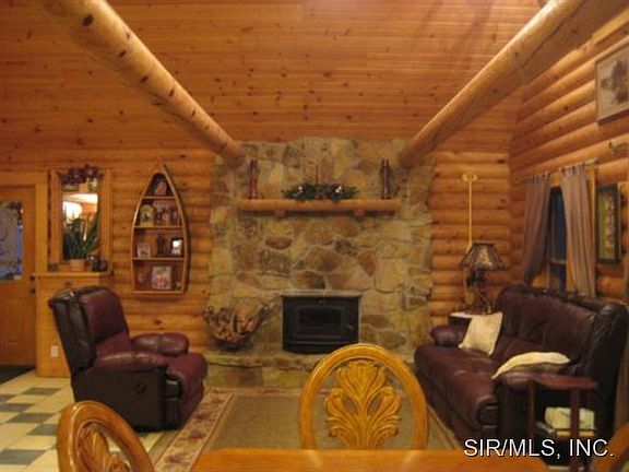 Own this private retreat.This custom 8"full round Hiawatha Log Home features 20' Cathedral ceilings, Open Floor plan, and Anderson windows.Log Balconied Master Loft. King Size custom log bed overlooks Great Room. Stone fireplace with Buck wood burning stove insert and blower. Argo Electro-Hydronic boiler Zoned radiant floor heat, in addition to forced air furnace and a/c. Kitchen boasts of corian counters, large 6' pantry, second rinse sink and large island. Lower level is a walkout with 2 large bedrooms, family room and 3/4 bath. Pole Barn 30x40, 2 bays, storage loft,concrete floor and (2)200amp services. Separate concrete RV pad 15x30 with 50amp electric and dump station. Stone outdoor Fireplace/ Grill,7'x7' Hot tub, Monitored Security System, Rainbow swing set. Childs playhouse. This and more on 19.89 acres, a 38' covered porch, and 26' deck. Agent related to seller.Buyer to verify all MLS data including but not limited to square footage, lot size, taxes, schools, etc.