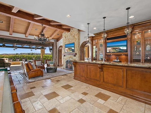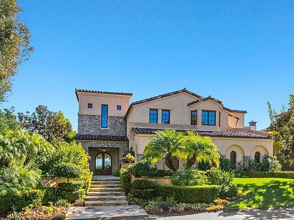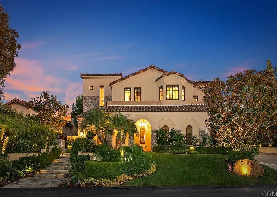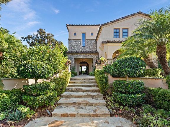 Embrace the California lifestyle in this custom retreat, inside the gates of Meadows Del Mar, home to the signature Grand Golf Club and the Fairmont Grand Resort and Spa. Sited on a cul-de-sac, this two-story home epitomizes quality, designed with a flair for entertainment and relaxing days under covered loggias next to a pool on a private, view lot. Walls of glass retreat to bring the sunshine and breezes into the spacious great room opening to the gourmet kitchen and breakfast area. Ample storage, high-end appliances, breakfast nook and island bar counter make entertaining easy and comfortable. Adjacent to great room and sharing a dual sized fireplace, family activities are enjoyed in the recreational room with a lively bar, room for game tables, media and more. Across the hall, a formal dining area features a walk in wine cellar, for quick access to one’s fine collection. A designated office with built-in cabinetry plus a comfortably private guest suite complete the main level. Upstairs, the expansive primary bedroom opens to a private balcony with sunny southeastern exposure. Off the spa-like bath, discover a covered deck perfect for outdoor massage or fresh-air workouts. The built-in closet has exquisite cabinetry and well-designed storage. Three secondary en-suite bedrooms are on the upper level anchored by a bonus room. For "FOODIES", the Addison Restaurant, about 1/8 mile from the property, recently earned THREE MICHELIN STARS! Bon Appetit!