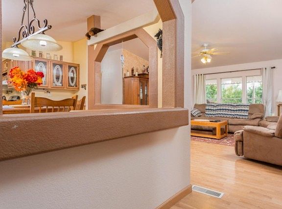 Welcome to this beautiful home. Large triple wide offers open kitchen with eat-in dining area,Oversized formal dining room or family room, possibly both. Gracious size living room with great views of backyard and its mature fruit trees. Split floor plan features Large private master suite walk in closet generously sized master bath,Opposite the two guest bedrooms and full bath. Also a bonus are two large storage sheds.Not to mention the 30x40 detached garage that could literally hold 6 cars with room to work details as follows:30 wide 40 deep, 1440 square ft.. 220 Amp service with 2-50 amp 220 outlets, one 30 amp 120 RV outlet on back, one 50 amp service disconnect box on back (unused), 2 isolated 120 duplex outlets, 8 ft. florescent lights. Out side lights have a dusk to dawn sensor.