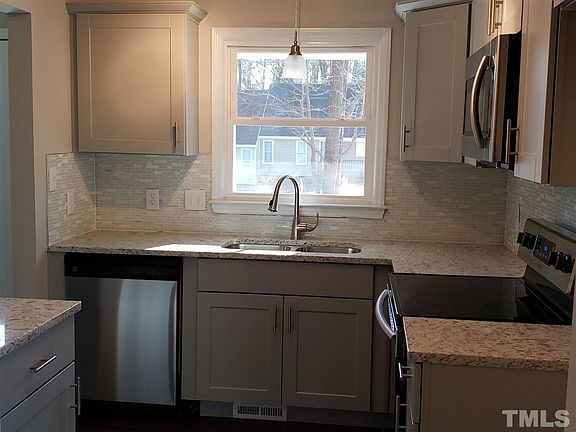 Bright and open floor plan that has been completely updated. All new paint, carpet, fixtures. Kitchen features new shaker cabinets, granite, tile back splash and Stainless Steel appliances. Beautiful 5" hand scraped bamboo floors in foyer, kitchen, dining and family room. Family room with fireplace. Master down with updated bath plus one other bedroom on the main floor. Bedroom up could be a master suite with full bath and walk in closet. Convenient to 440, 40,Downtown Raleigh and Shopping.
