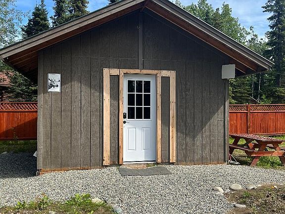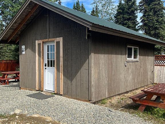 Minutes to Johnson Lake, This attractive lot offers 5 tent sites currently with room for more and two RV sites that are hooked up to electric and water! There is also septic onsite! Each site is well manicured with rocks, fire pit, and stained round tables for entertaining. The 280 sq ft cabin includes washer and a dryer with a folding station, shower, with separate bathroom.