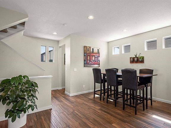 Stunning home in the perfect location! Around the corner from the neighborhood park, near Green Valley Ranch Golf Club, Town Center Recreational Fields, schools, shopping, and dining, never be short of activities. This home welcomes you in with wood look tile flooring to the bright great room and kitchen area. The eat-in kitchen features granite counters, custom pendant lighting, updated backsplash, gas stove, large center island, and stainless-steel appliances. Enjoy entertaining guests with not one, but two balconies off the main floor. Head upstairs to the primary suite featuring dual sinks, large walk-in shower, and walk-in closet, two secondary bedrooms, full bathroom, and conveniently located laundry room. Venture to the lower level to find an additional living space with access to the backyard perfect for a fitness area or game room. Bring the entertainment outside to the fully fenced grassed backyard featuring a garden area. Enjoy low maintenance living with the HOA maintaining the front and handling snow removal in the driveways and sidewalks. Near Pena Blvd and I-70 making commuting to DIA or Denver seamless! Don’t miss out on this stunning home in the absolute perfect location!