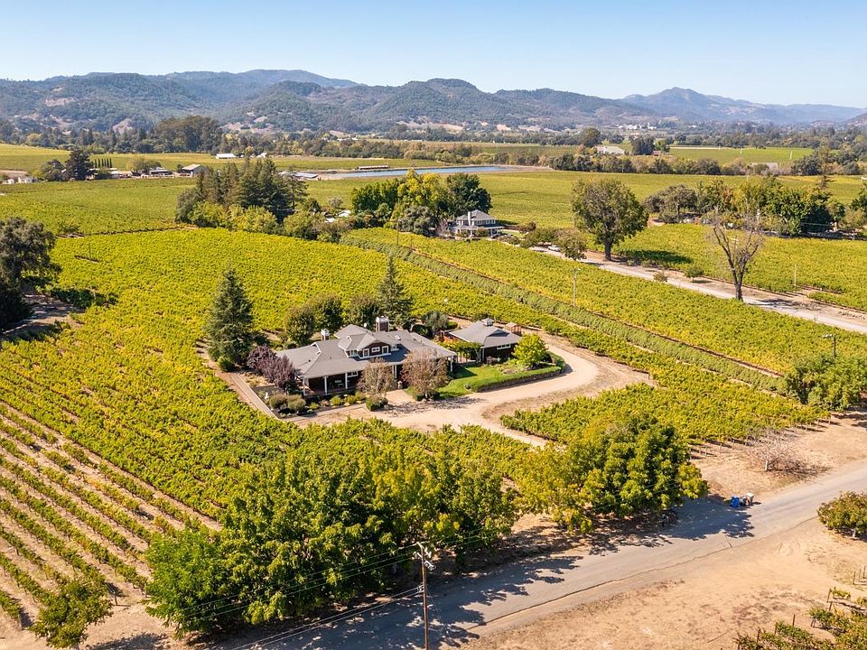 Quintessential Napa Valley farmhouse vineyard estate featuring rare valley floor location in coveted Big Ranch Road corridor of Oak Knoll AVA with panoramic vineyard & mountain views minutes to downtown Napa & Yountville! Located on 7+ pristine acres with 5.3-acre Sauvignon Blanc vineyard, lies a classic farmhouse exuding charm & character featuring expansive approx 1950 sq ft wrap-around porch with series of French doors that open from main living areas & spacious primary ensuite all on 1st level. 2954 sq ft 3 BR with loft 2.5 BA offers great room style living including family room with fireplace opening to kitchen featuring large center island with counter seating, stainless gas cooktop & hood, double ovens, scullery/mudroom, informal dining area & temperature-controlled wine cellar. Loft perfect as office or exercise area & 2 spacious BRs on upper level. Additional features include formal dining & living room with fireplace, detached 985 sq ft 3 car garage, built-in BBQ, garden beds, green house & expansive outdoor entertaining area with room for pool. Professionally managed vineyard with grapes sold to PlumpJack/Cade & Merryvale. Continue to sell the grapes &/or make your own wine, take long walks through the vineyards &/or cycle on the Vine Trail!