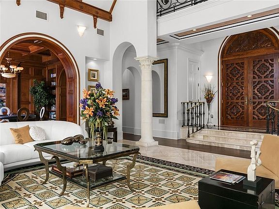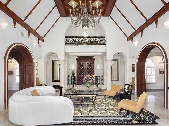 This home exudes a spirit of elegance derived from its European architectural influences. Located in the renowned community of Isleworth this stunning custom home is highly stylish yet comfortable; perfect for family living and entertaining. The arched solid wood custom made double doors create a refined entry. The formal living and dining rooms are brightened by arched clerestory windows and doors illuminating the stunning ceiling details which further define the arrival experience. Opening naturally to the library, a warm area, nicely finished with custom built ins and hardwood flooring. The family gathering area features a built in entertainment center surrounding the stone fireplace and a set of French doors to the lanai. The gourmet kitchen is a chefs dream; stone flooring and a working island combine function and beauty with double ovens, exotic granite, stunning custom cabinetry, and walk in pantry. The office is well finished with wood ceiling detail and built in cabinetry. Entertain outdoors in true Florida style, an expansive outdoor living space with pool and heated spa. The summer kitchen with grill and fridge are great for al fresco dining on the covered screened porch. The romantic master suite is private with huge master closet and beautifully finished master bath. Guests enjoy the private entrance to the guest suite with morning bar, walk in closet and full bath. A brand new media area creates the perfect space for family movie night. The secondary bedrooms are large and en-suite.
