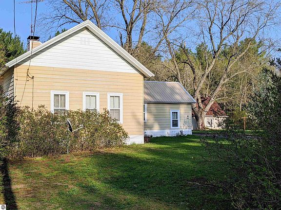Over 600 feet of private water frontage, and a fantastic opportunity to own a beautiful piece of property in a perfect location between Traverse City, Kalkaska, and Cadillac. This 3 bedroom, 1 bathroom home includes 4.5 acres of serenity on Boardman Pond. The home is roomy and incorporates a spacious kitchen, formal and informal dining areas, and a 3-season sun room for relaxed reading or socializing with friends and family. There is a detached 2-car garage and an additional large outbuilding (garden shed) for all of your storage needs. The grounds also boast garden areas with cherry, plum, and several varieties of apple trees, as well as blackberry, blueberry, raspberry, and strawberry bushes. The quiet neighborhood and peaceful setting truly make this property a gem.