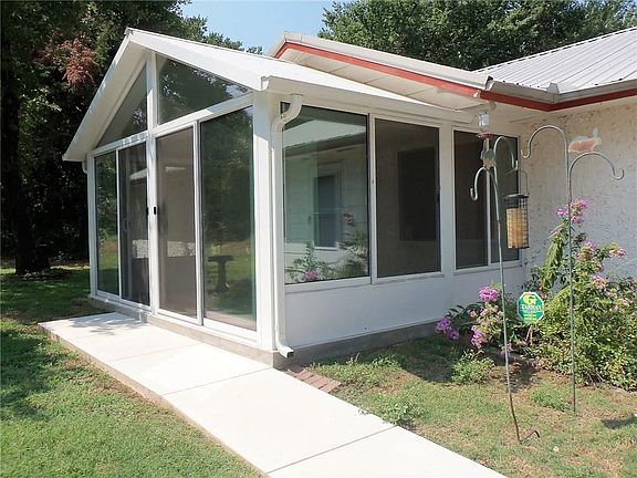 Very well maintained with energy gas filled Champion windows, roof, siding & a Florida Room on front of home 1 yr old. Home sits on 1.25 acres all fenced, newer septic lines, newer plumbing ran overhead with all pex, new pressure tank in well & HWT. All appliances in kitchen with breakfast bar and dining area. Spacious living room for entertaining, converted garage into office area with storage. Lots of storage, a storage building out back, beautiful flowers planted thru out yard, lots of big shade trees and a storm cellar. Double oversized carports at side of driveway for easy in and out.